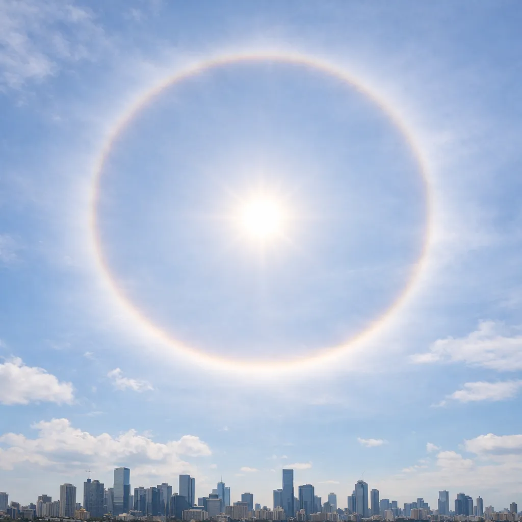 Елорда үстінде сирек кездесетін атмосфералық құбылыс — күннің айналасында жарқыраған сақина пайда болды. Видео редакцияға оқырманнан келіп түсті.