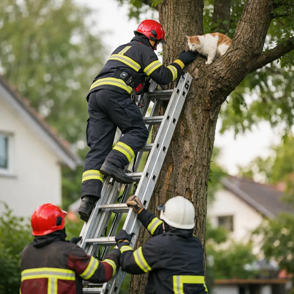 ⛑️ Оқиға орнына келген құтқарушылар үш иінді сатыны пайдаланып ағашқа көтеріліп, жануарды түсірді.
