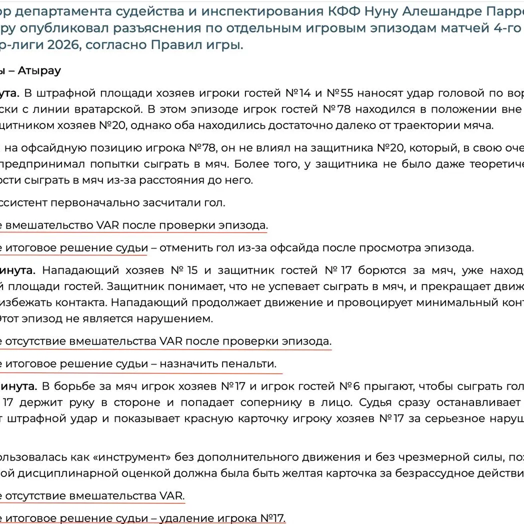 Осылайша, бір ойында екі шешуші қателік тіркелген. Мәтінде төреші Санжар Ысқақов пен ВАР-дағы арбитрді ұзақ уақытқа матчтарға қызмет көрсетуден шеттетеді деген үміт айтылды.