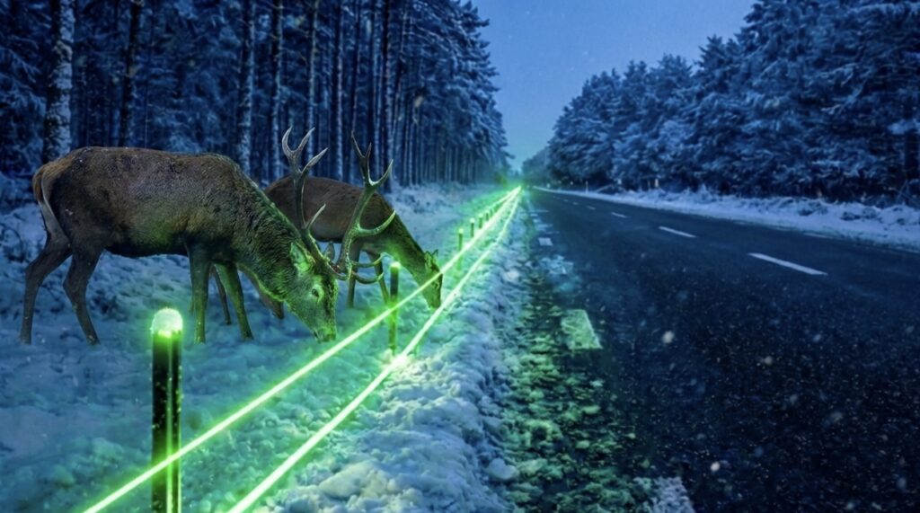 Предполагается, что такие световые ориентиры будут направлять оленей и других зверей к специально оборудованным безопасным переходам через трассы. В отличие от металлических и бетонных конструкций, технология не перекрывает природную среду и не нарушает миграционные маршруты, а лишь формирует визуальное ограничение.
