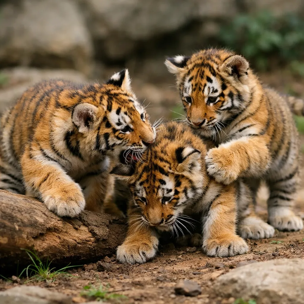 Родителями тройни выступают амурские тигры по кличкам Бентли и Ярга. Малыши появились на свет 11 января, но первые месяцы жизни провели в уютном домике с матерью, скрываясь от публичного внимания.