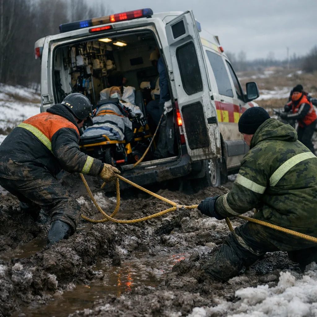 🚒 На помощь медикам оперативно прибыли спасатели, которые с помощью буксировочных тросов эвакуировали спецтранспорт на проезжую часть.