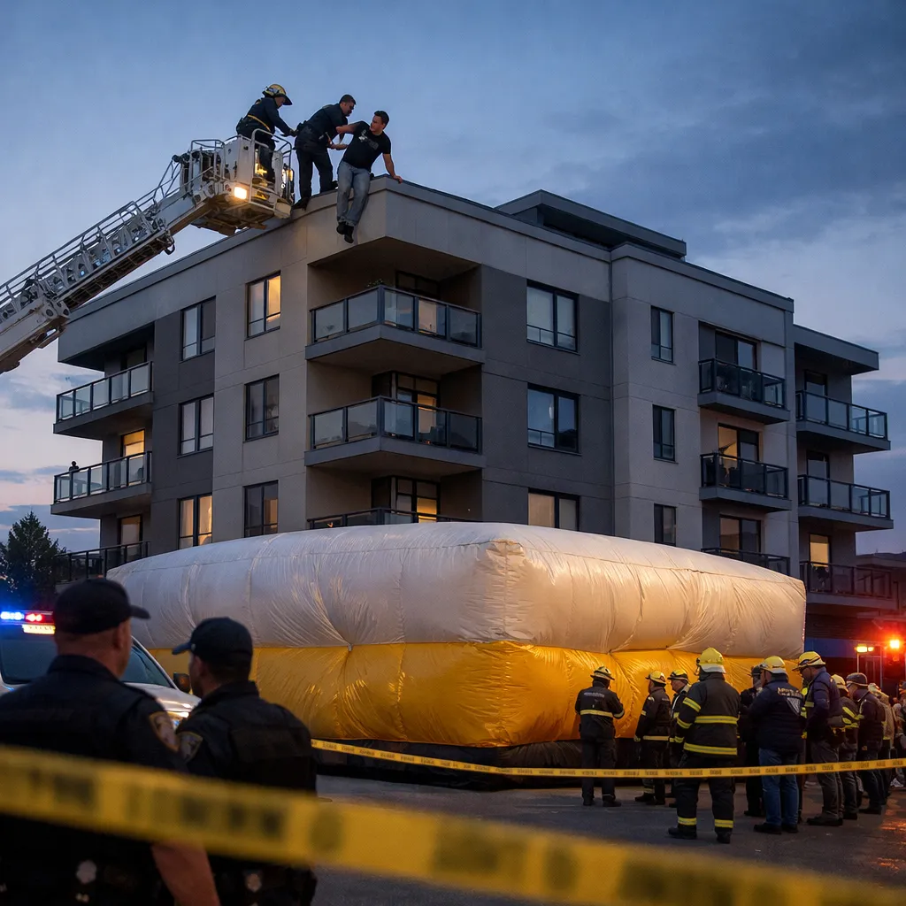 На место происшествия оперативно прибыли экстренные службы и психологи. Сотрудники полиции оцепили территорию, а внизу была развернута спасательная надувная подушка.