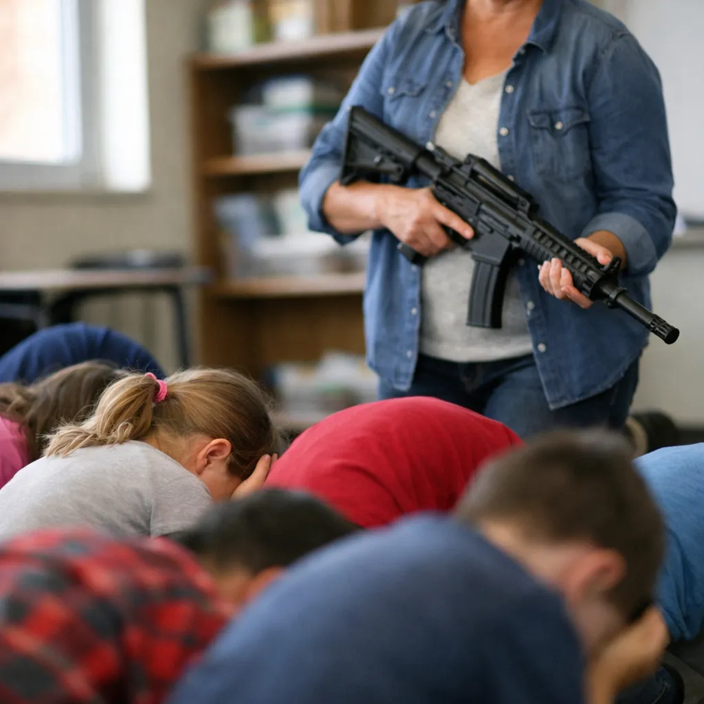 Учитель в челябинской школе организовала фотосессию с детьми на коленях и автоматом