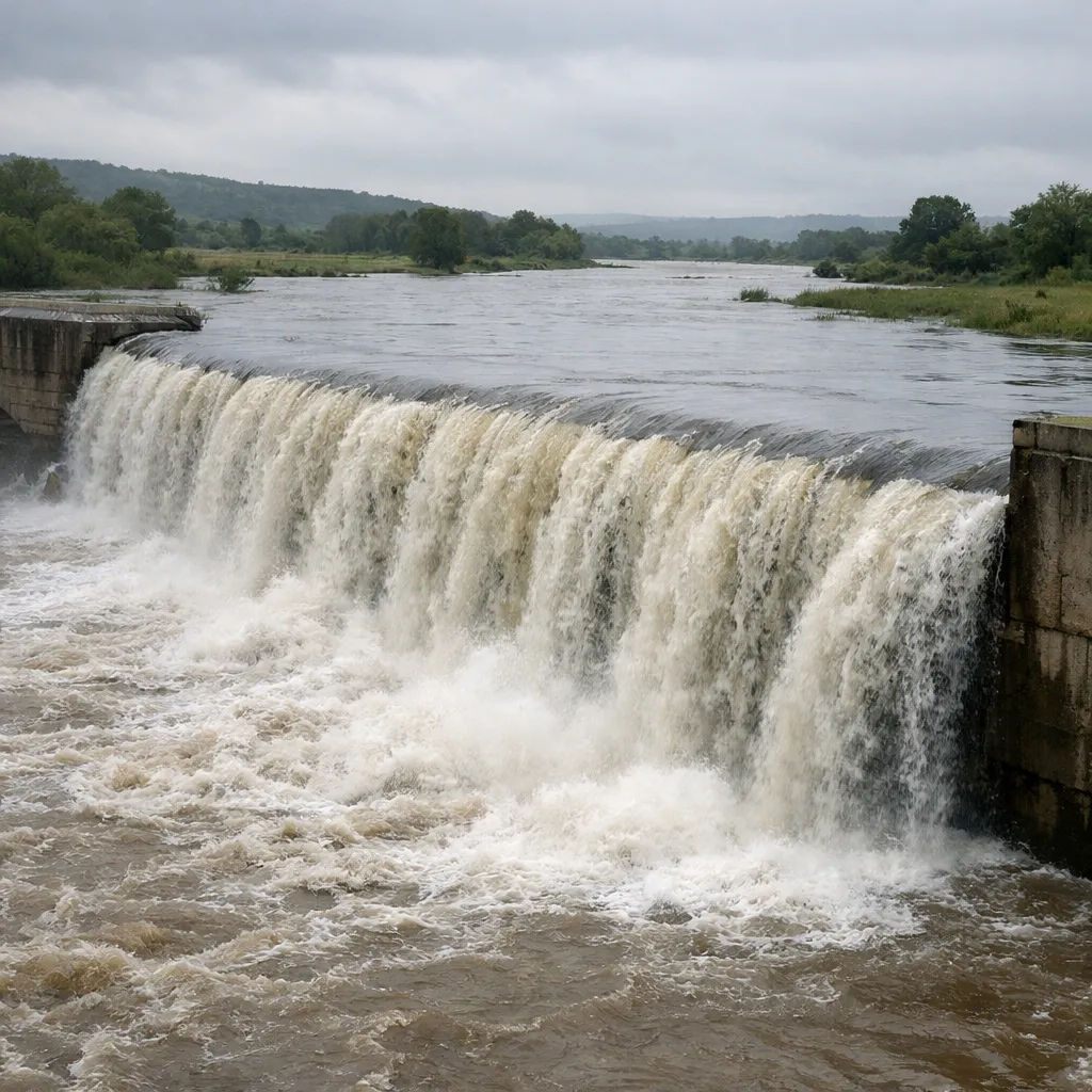 Сергеевское водохранилище переполнилось: вода переливается через плотину в Северо-Казахстанской области