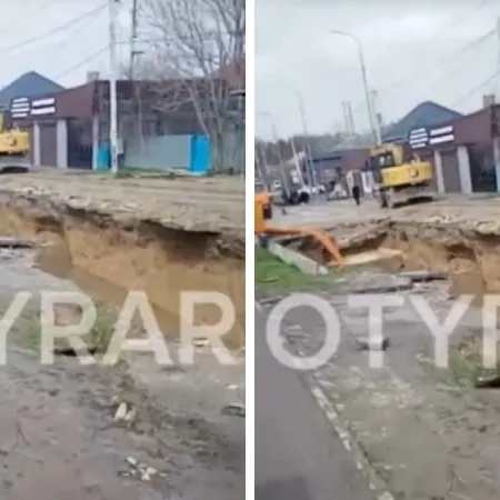 В микрорайоне Оңтүстік Шымкента на улице Камысты произошло обрушение дорожного покрытия по причине аварии канализационн…